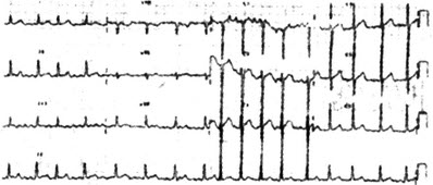 - 单项选择题一风湿性心脏病二尖瓣狭窄患者,突然出现心悸、脉搏短绌,立即行心电图描记。显示如图。该患者的心律是()