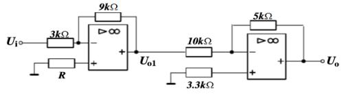 - Uo1=-(9kΩ/3kΩ)Ui=-3×2V=-6V