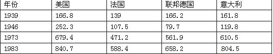 材料四:欧美主要国家国内生产总值指数表(1913年指数为100)