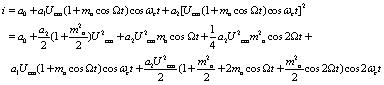 ,由于它的幅值与输入信号幅值的平方成正比,故称平方律检波。频率为2Ω的成份与频率为Ω的基带信号较接近,因此不容易滤除,将造成输出信号的非线性失真。定义二次谐波失真系数为二次谐波与基波之比: