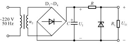 - 简答题 下图是直流稳压电源电路图,试叙述该电路的工作过程。