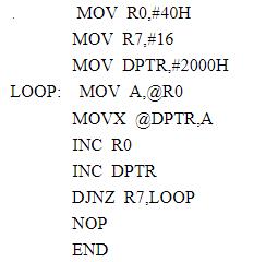 - 简答题编程将片内RAM 40H 单元开始的16个数传送到片外RAM 2000H 开始的单元中。