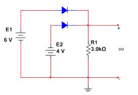 - 简答题已知电路如下图所示,忽略二极管的正向导通电压,求电路的输出电压Uo和电阻R上的电流。