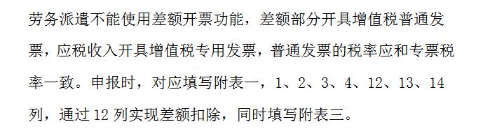 - 简答题劳务派遣企业适用差额征税的的,用专票开服务费,普票开具的税率为0的代垫工资、福利费发票如何申报?