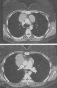 - 单项选择题 患者女,27岁,双侧颈部淋巴结肿大,PPD(-),结合CT图像,最可能的诊断是()。