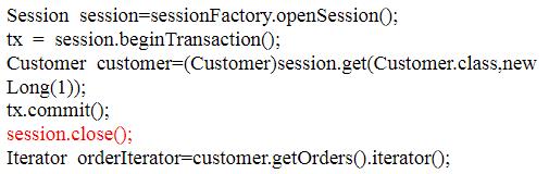 - 单项选择题 假设对Customer类的orders集合采用延迟检索策略,编译或运行以下程序,会出现()