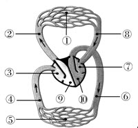 - 简答题	下图为人体部分血液循环示意图,请据图回答。