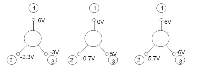 - 简答题用直流电压表测某电路中三只晶体管的三个电极对地的电压,其数值如下图所示。试指出每只晶体管的E、B、C三个极,并说明该管是硅管还是锗管。