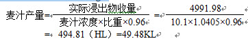 糖化后的实际浸出物收量=5068×98.5%=4991.98kg