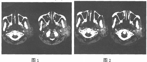 - 单项选择题 女,55岁,鼻咽癌放疗后15年,近1周左耳根部肿涨,无发热,PE://左耳根部皮下们及三个结节,有波动感和轻压痛,CT如图所示,最可能的诊断是()。