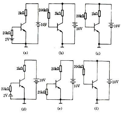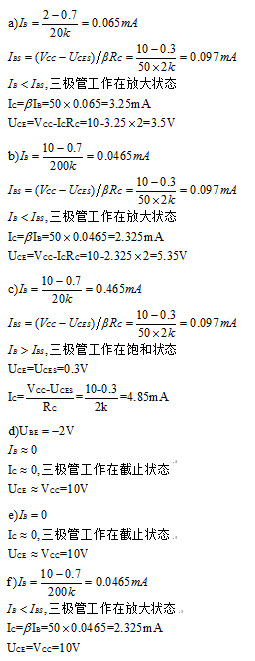 - 简答题 已知图(a)~(f)中各三极管的β均为50,UBE≈0.7V,试分别估算各电路中三极管的IC和UCE,判断它们各自工作在哪个区(截止区、放大区或饱和区)。