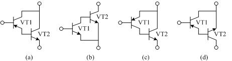 - 简答题 试分析下图中各复合管的接法是否正确。如果认为不正确,请扼要说明原因;如果接法正确,说明所组成的复合管的类型(NPN或PNP),指出相应的电极,并列出复合管的β和γbe的表达式。