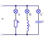 - 单项选择题 如图交流电路中,电压U不变,当电源频率升高,则各灯泡亮度变化是()。
