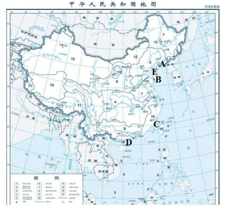 下图表示的是我国主要的半岛与海峡。请根据下图回答以下几个问题。