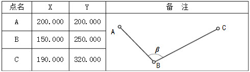 - 单项选择题 如下表所示,αAB=135°00′00″,如果在B点安置经纬仪,用极坐标法测设C点,水平角β应为()。