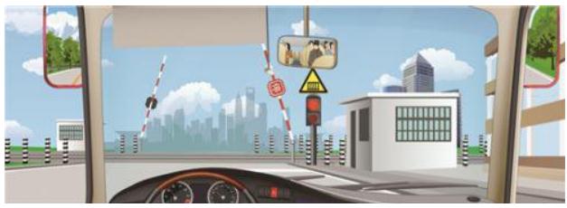 - 判断题 驾驶公交车通过图中这个铁路道口时要减速停车