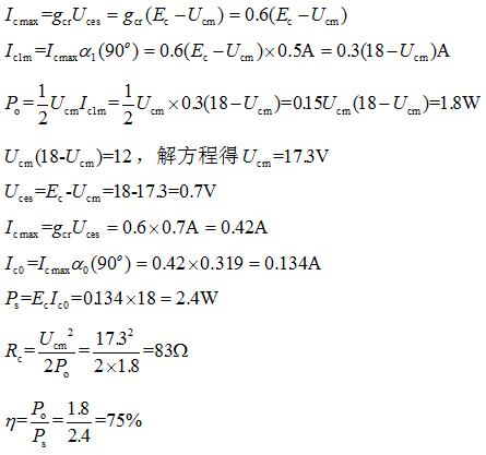 - 简答题 一高频功率放大器工作在临界状态,已知Ec=18V,gcr=0.6A/V,θ=90°。若要求Po=1.8W,求Ps,Pc,ηc,Rc?