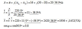 - 简答题已知RLC串联电路中,电阻R=16Ω,感抗XL=30Ω,容抗XC=18Ω,电路端电压为220V,试求电路中的有功功率P、无功功率Q、视在功率S及功率因数cosφ。