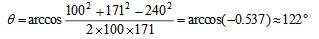 由KVL定律可知,三个电压可构成一个电压三角形,对这个电压三角形可运用余弦定理求出电压U1和总电压U之间的夹角θ(如相量图示)为: