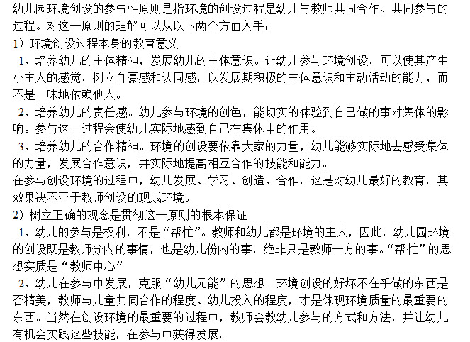 - 简答题如何理解幼儿园环境创设的参与性原则?