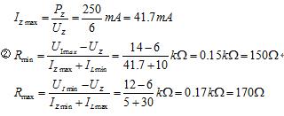 ①当电网电压最高而负载电流最小时,稳压管电流最大;当电网电压最低而负载电流最大时,稳压管电流最小。