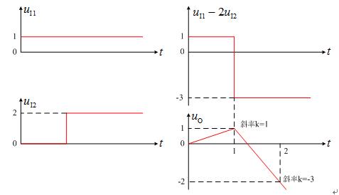 ②u0的波形如下,其中t=1s时,u0=1V,t=2s时,u0=-2V