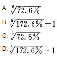 - 单项选择题3、 某市财政收入2014年比2009年增长了72.6%,则该市2009年财政收入的平均增长速度为()。