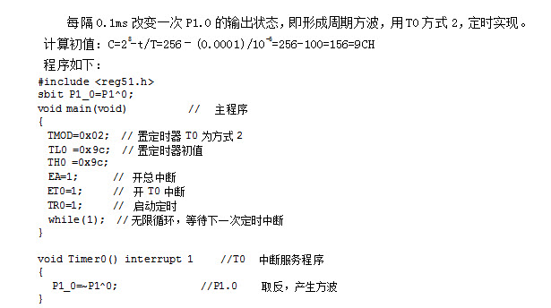 - 简答题如图,已知MCS-51单片机系统晶振频率为12MHz,试编写程序,用定时器T0,工作方式2,使P1.0引脚输出如下周期方波。