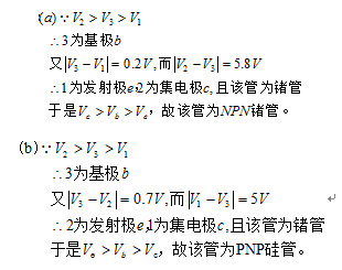 - 简答题 分别测得两个放大电路中三极管的各极电位如图(a)和(b)所示,试识别它们的管脚,分别标上e、b、c,并判断这两个三极管是NPN型,还是PNP型,硅管还是锗管。