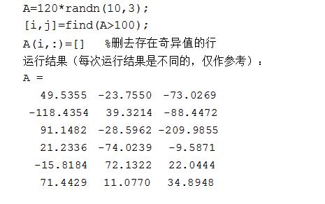 - 简答题在一测量矩阵A(100*3)中,存在有奇异值(假设大于100的值认为是奇异值),编程实现删去奇异值所在的行。