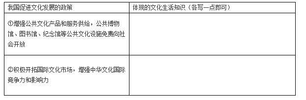 - 简答题 文化是一个民族的精神和灵魂,是国家发展和民族振兴的强大力量。在表右列写出左列对应信息的文化生活知识依据。