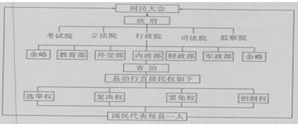 材料三:1924年孙中山先生在《五权宪法》一文中为中国政治构架设计如下示意图