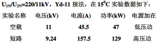 - 简答题一台三相电力变压器额定数据为:SN=20000kVA,U1N/U2N=220/11kV,Yd-11接法,在150C实验数据如下: