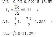 输出的直流电压为13.5伏,直流电流为2.7安,二极管通过的电流为1.35安,最高反向电压为21.2伏。 关注下方微信公众号,在线模考后查看
