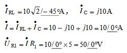 因为并联支路端电压初相为零,所以总电压初相也为零,即U并=100-50=50V,因此