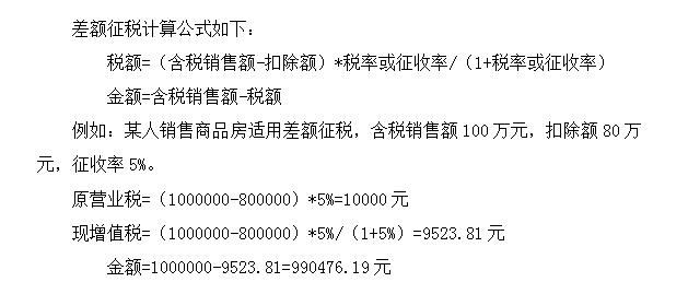 - 简答题差额征税的计算公式是什么?