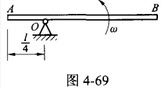 - 单项选择题 均质细直杆AB长为ι,质量为m,以匀角速度ω绕O轴转动,如图4-69所示,则AB杆的动能为()。