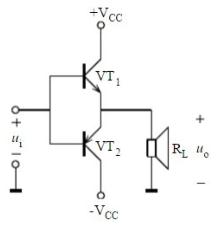 - 简答题如下图所示的功放电路中,已知VCC=12V,负载RL=8Ω。ui为正弦电压,求在忽略三极管的饱和压降UCES的情况下,负载上可能得到的最大输出功率。