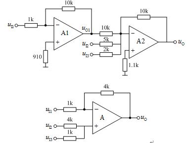 (a)中A1构成的电路为反相比例电路,A2构成的电路为反相求和电路,则