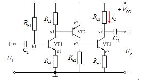 - 简答题 若下图电路中要求达到以下的效果,则应引入什么反馈?将答案写在括弧内。 ①提高从b1端看进去的输入电阻:接RF从()到(); ②减小输出电阻:接RF从()到(); ③希望Rc3改变时,其上的I0(在给定