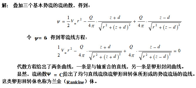 - 简答题 z=d,点汇–Q,z = -d,点源Q,与均匀流V∞叠加。求流函数和物面形状。