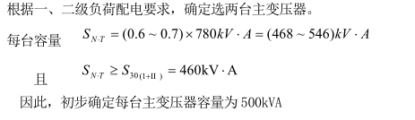 - 简答题某10/0.4kV变电所,其总计算负荷为780kVA,其中一、二级负荷为460kVA,试初步选择主变压器的台数和容量。