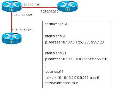 D、RTA will send OSPF updates, but will not establish an adjacency with RTB