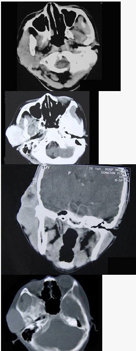 - 16岁女性患者,右侧面颊部肿胀,CT扫描