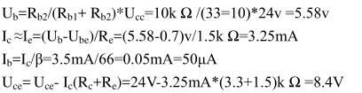 =3.3kΩ,Re=1.5kΩ,Rb1=33kΩ,Rb2=10kΩ,RL=5.1kΩ晶体管β=66设Rs=0.试求静态值Ib、Ic、Uce