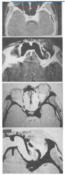 - 单项选择题 男,44岁,车祸伤及左侧眉弓和头部,半月后左眼球结膜高度水肿,视力减退,左眼球突出,CT检查如图,最可能的诊断为()。