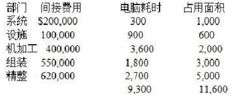 - 单项选择题 Logo公司有两个数据服务部门(系统部和设施部)向三个生产部门提供服务(机加工部、组装部和精部)。系统部的间接成本按电脑使用小时来向其它部门分配;设施部的间接成本按占用的平方面积(以千平方米来表示)来分配。Logo公司的其资料见下: