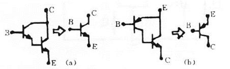 复合管可由两个型号相同,或型号不同的三极管联接成一个三极管,接法如图所示。