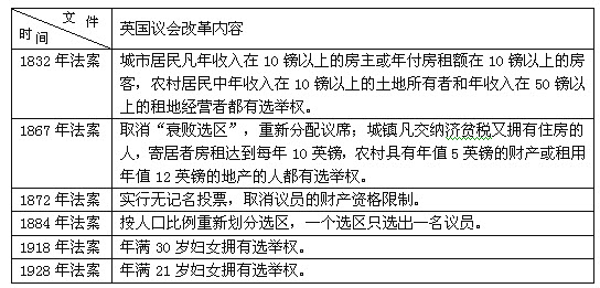 据材料一指出英国选举权改革的趋势?这体现了英国政治民主化道路的怎样特点?