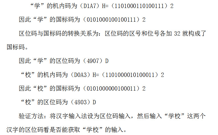 - 简答题已知“学校”汉字的机内码为D1A7和D0A3,请问它们的国标码、区位码分别是什么?如何验证其正确性?